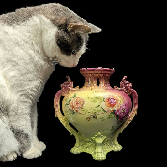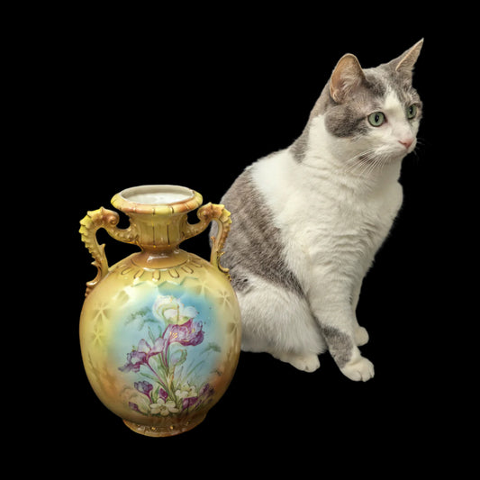 Antique Austrian Porcelain Vase – Hand-Painted Iris, Art Nouveau Sculptural Handles (Austria), c. 1910 🇦🇹🏺🎨