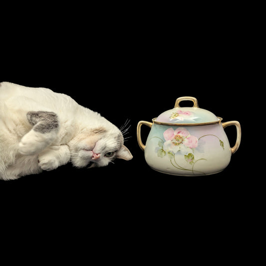 Vintage Hand-Painted Covered Serving Dish by PM Bavaria (Floral, Porcelain), Circa 1900 🌸🍽️🇩🇪