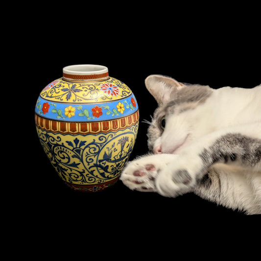 Hand-Painted Royal Satsuma Dolphin Handle Vase – Moriage Enamel and Gilt Chinese Export, c. 1950 🐬🎨🏺
