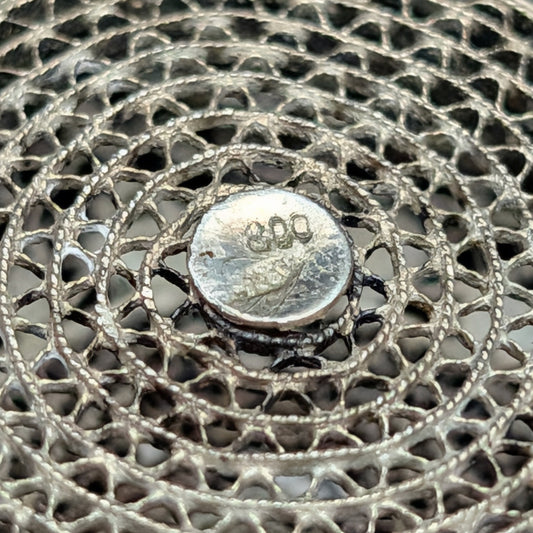 Antique Silver Filigree Hexagonal Pill Box (Lace Openwork, Stamped 800) 💍✨💎