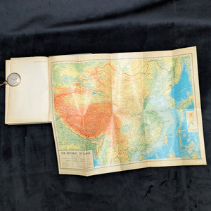 The interior pages are in excellent condition, with clear text, vibrant illustrations, and intact fold-out maps.