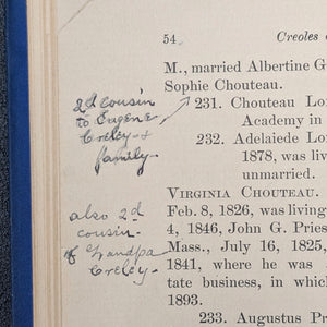 The annotations provide a direct connection to a previous owner's family and their ties to the Chouteau lineage, adding an intimate and non-replicable element to this rare book.