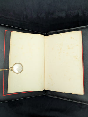 The book's seal features "EUREKA" and the year 1856, the year the society was founded, and 1870, the year the state medical license was created.